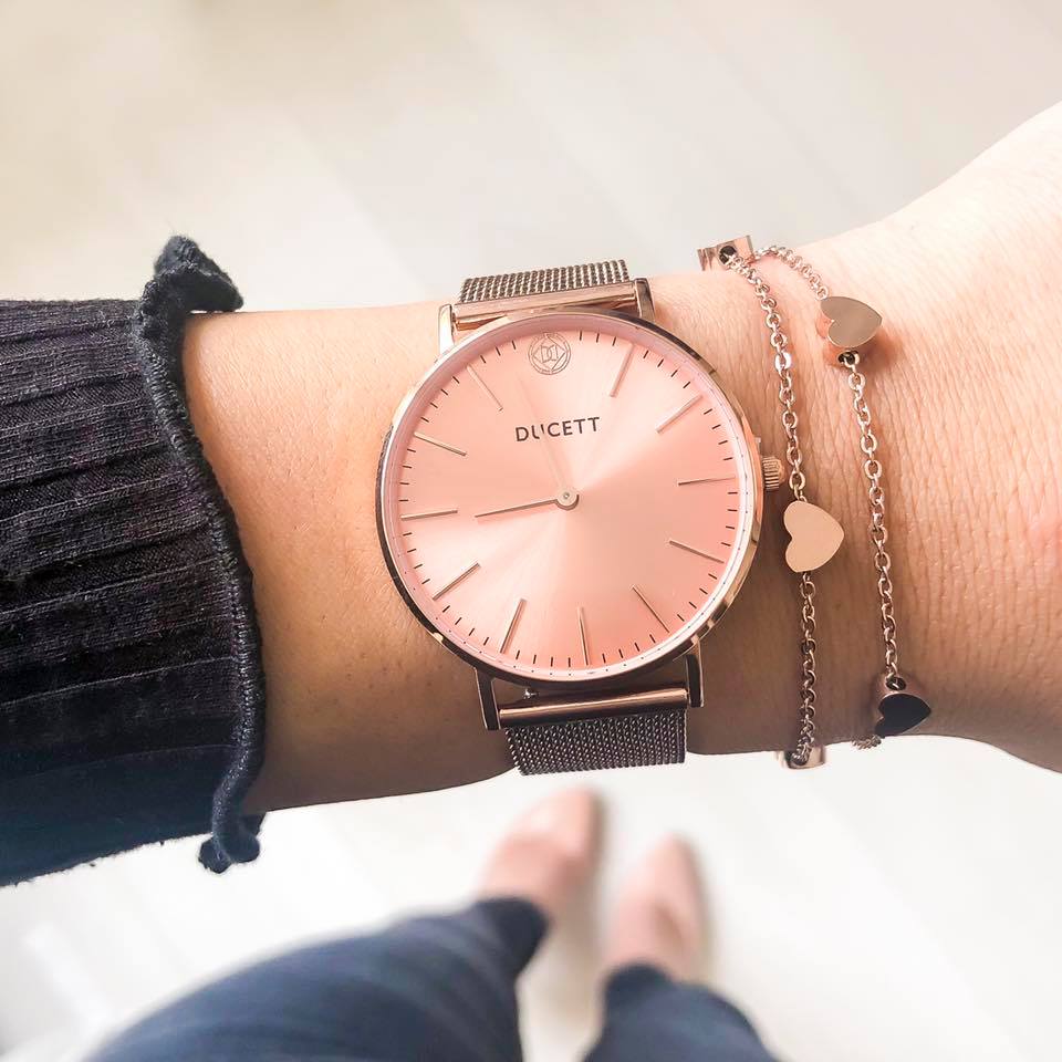 Double heart chain rosé gold