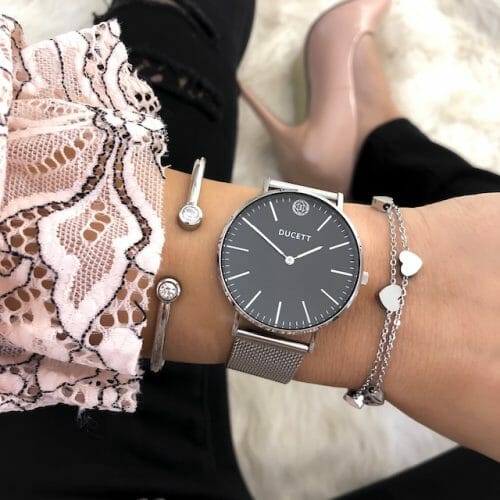 This cute bracelet has seven small hearts with a double chain. The length of the bracelet can easily be adjusted with the adjustable chain clasp. The bracelet can be worn alone or in combination with other bracelets for a trendy look.